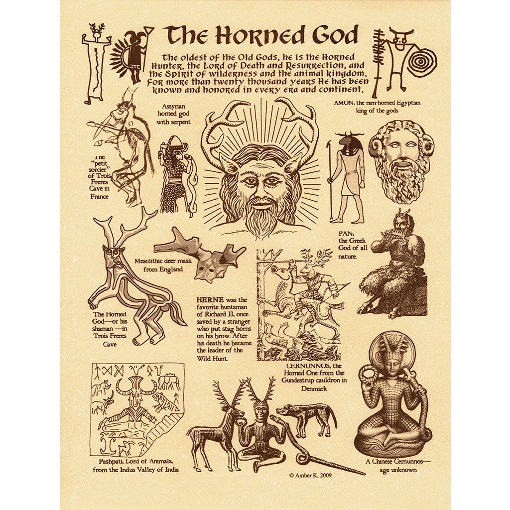 The Horned God is the lord of the woodlands, the hunt and animals. He also is the lord of life, death and the underworld. He is the sun to the Goddess’ moon.